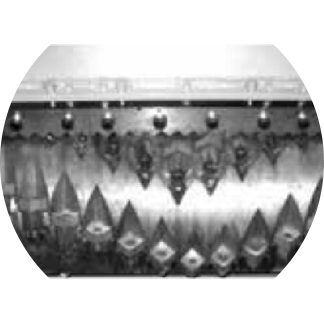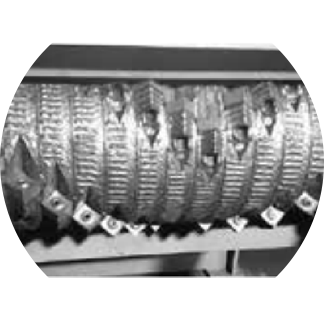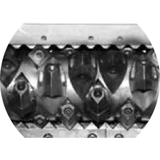 此刀輥是針對ABS.PC.尼龍等堅(jiān)硬材料進(jìn)行特殊設(shè)計(jì)。刀具沉入較深,單次切料較少,減少沖擊,同時降低噪音。